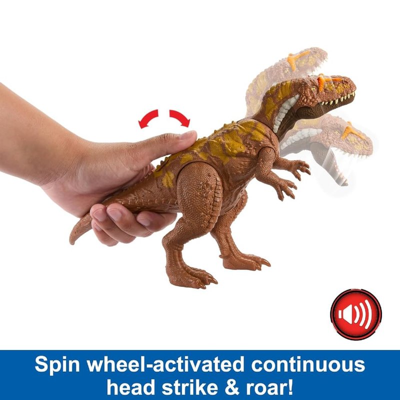 Mattel Jurassic World Wild Roar Dinosaur Toy with Sound & Attack Move, Megalosaurus Posable Action Figure Includes Digital Play, 11 inches Long