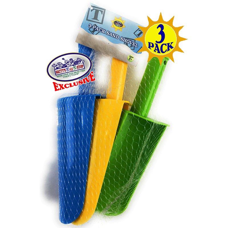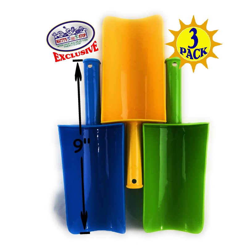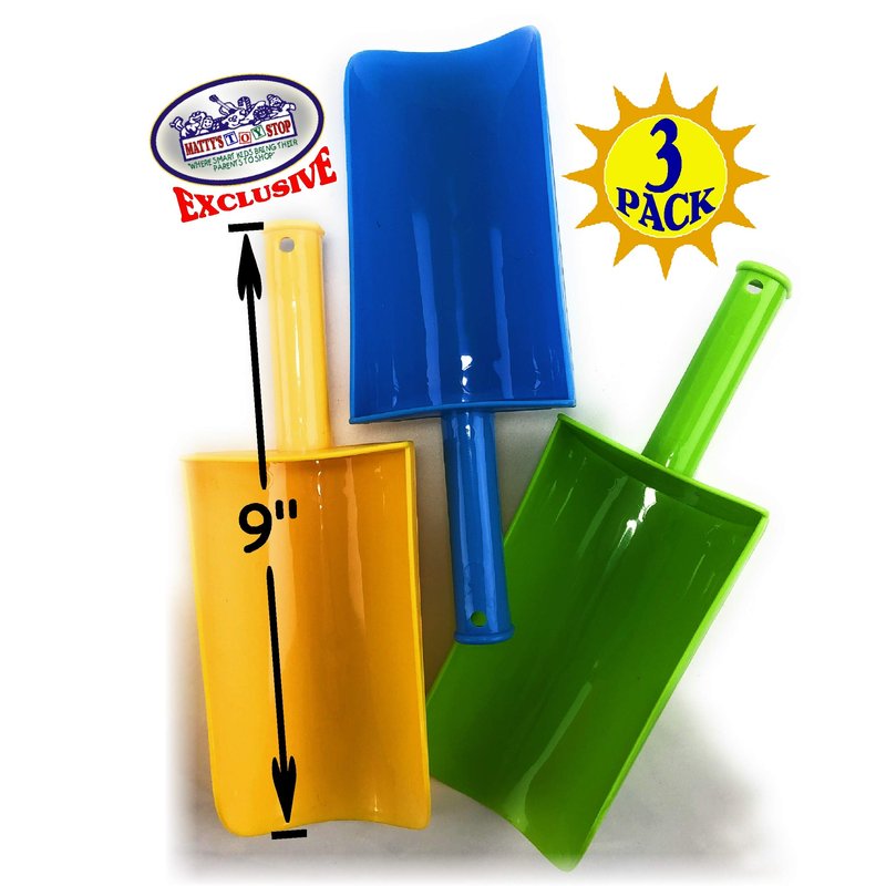 - Enjoy hours of fun and adventure with the Matty's Toy Stop 9" Kids Short Handle Sand Scoop Plastic Shovels Gift Set Bundle. Crafted with durability in mind, these sturdy shovels feature a 6" x 3" plastic spade for easy and efficient scooping of sand, dirt, and more.