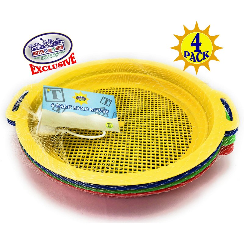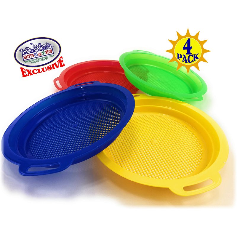 Matty's Toy Stop Sand Sifter Sieves for Sand & Beach (Red, Blue, Yellow & Green) Complete Gift Set Bundle - 4 Pack (8.75'' x 9.75")