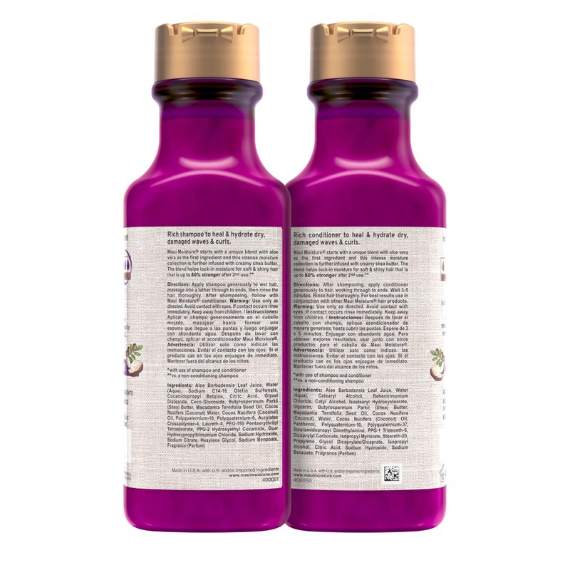 Maui Moisture Heal & Hydrate + Shea Butter Shampoo + Conditioner to Repair & Deeply Moisturize Tight Curly Hair with Coconut & Macademia Oils, Vegan, Silicone, Paraben & Sulfate-Free, 13 Fl Oz (Pack of 2)
