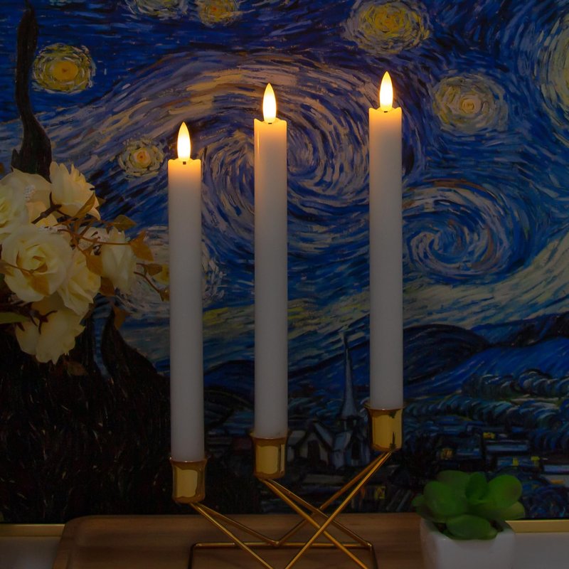 - LED TAPER CANDLES: You will receive 4 white flameless taper candles(0.78” x 9.64”), one remote control and one manual. Our flickering taper candles are made of the highest quality real wax and have been strictly tested before leaving the factory to ensure the flameless taper candles are durable and not easy cracked