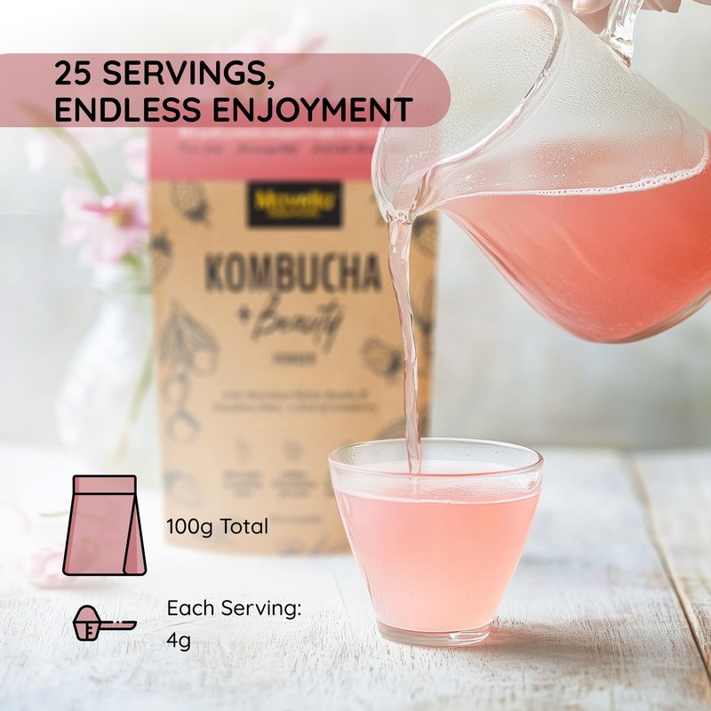 - Convenient Kombucha Powder - Enjoy the benefits of delicious Australian Native kombucha tea on-the-go with our easy-to-use mix drink of Kombucha Powder 100g (25 servings on 4g per serving), per serving mix with 200ml water or sparkling water