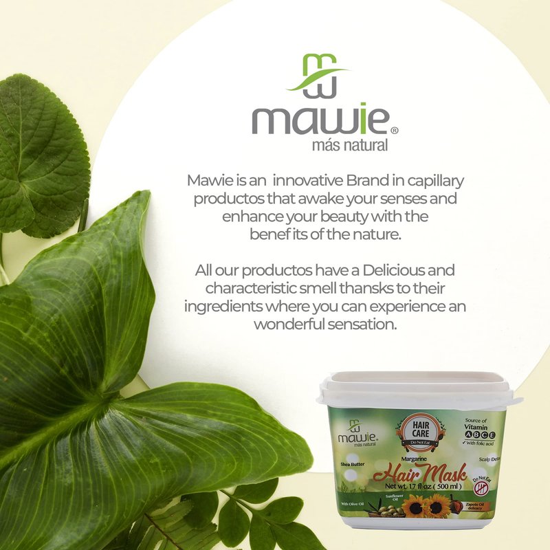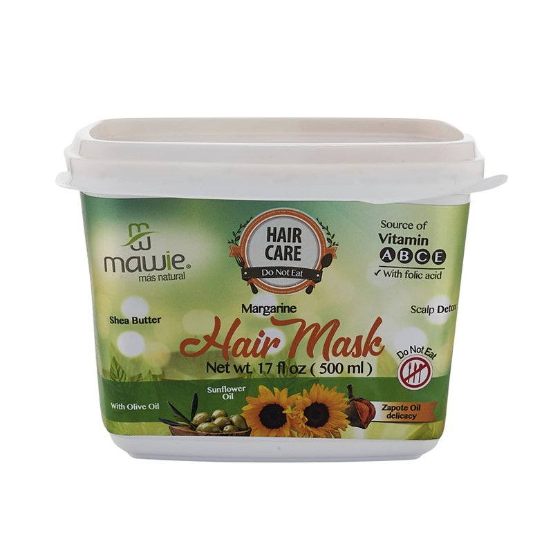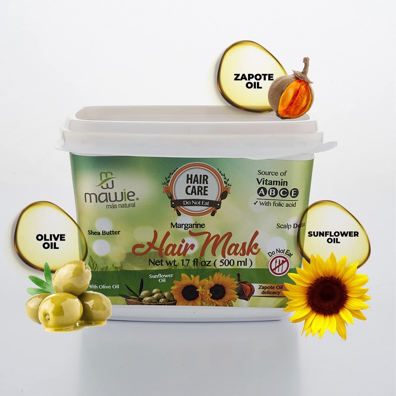 MAWIE 500ml Margarine hair treatment for dry hair with sunflower, olive and sapote oils - Mask for abundant curls, extremely damaged hair treatment, deep hydration and definition of curl, hair care