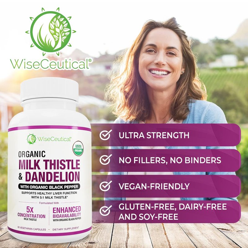 - USDA CERTIFIED ORGANIC: Ensure the safety and purity of your Milk Thistle supplement with Wiseceutical's USDA Certified Organic Milk Thistle. Non-organic milk thistle can be contaminated and even harmful to your liver, but our organic milk thistle is all-natural, vegan, and non-GMO. Trust in our commitment to organic quality.