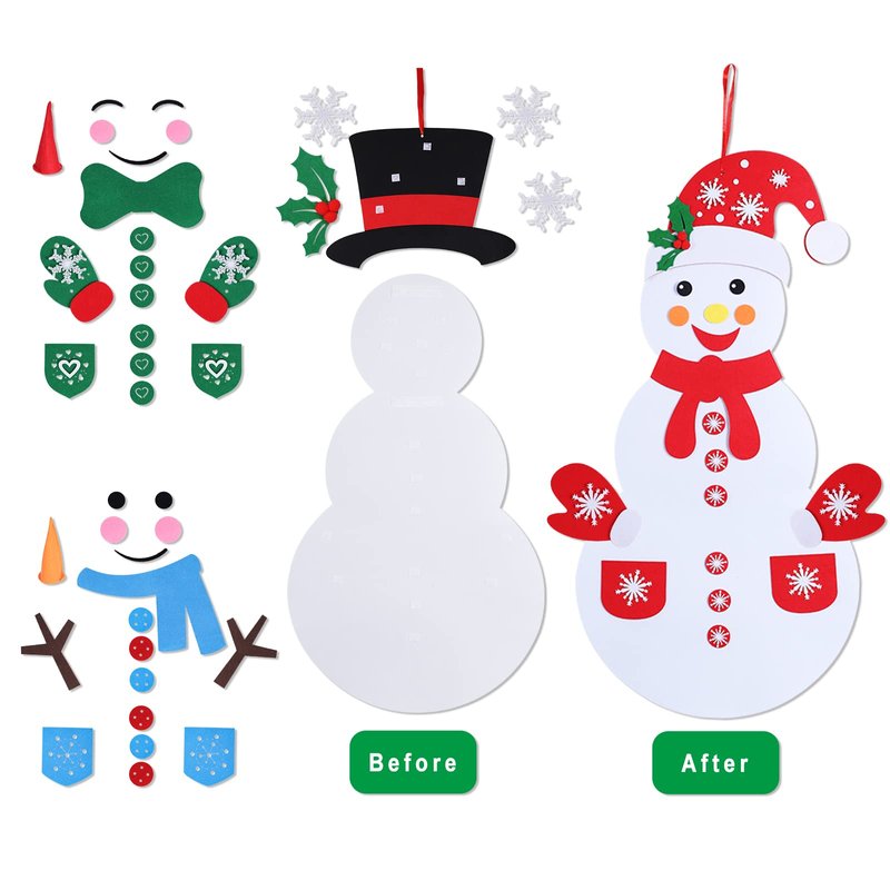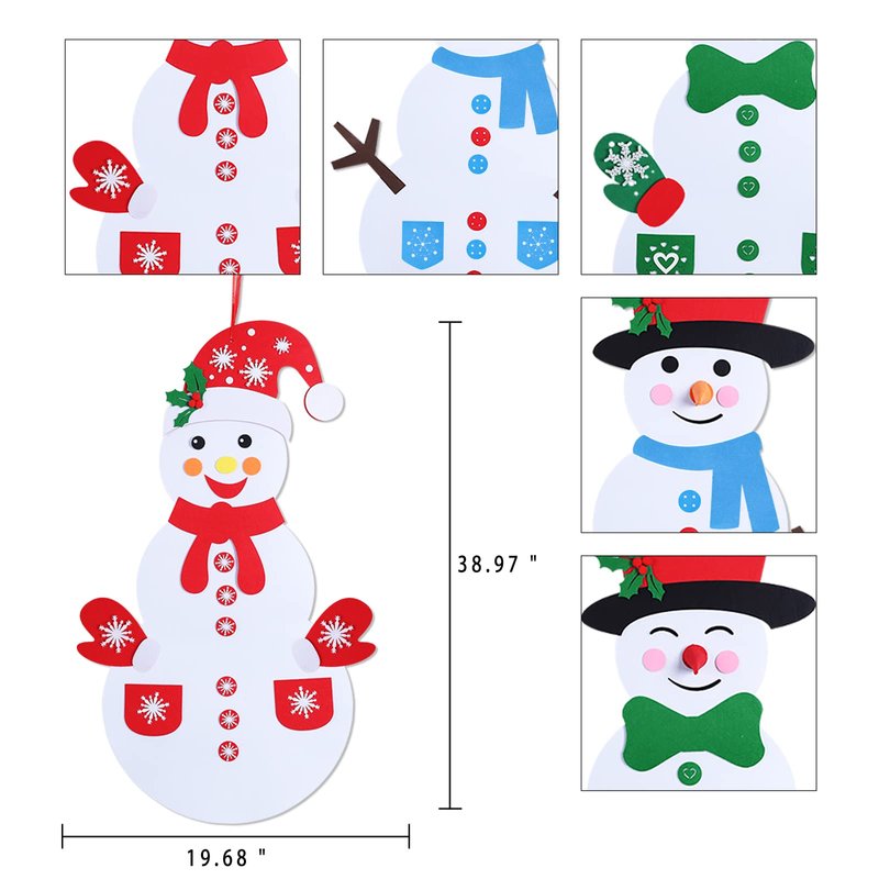 - Package includes: This Christmas Snowman Crafts includes 1 Diy Felt Christmas Snowman Set + 58Pcs ornaments (multiple Style Modes), such as, Christmas gloves, Scarves, snowflakes, hat, and etc.