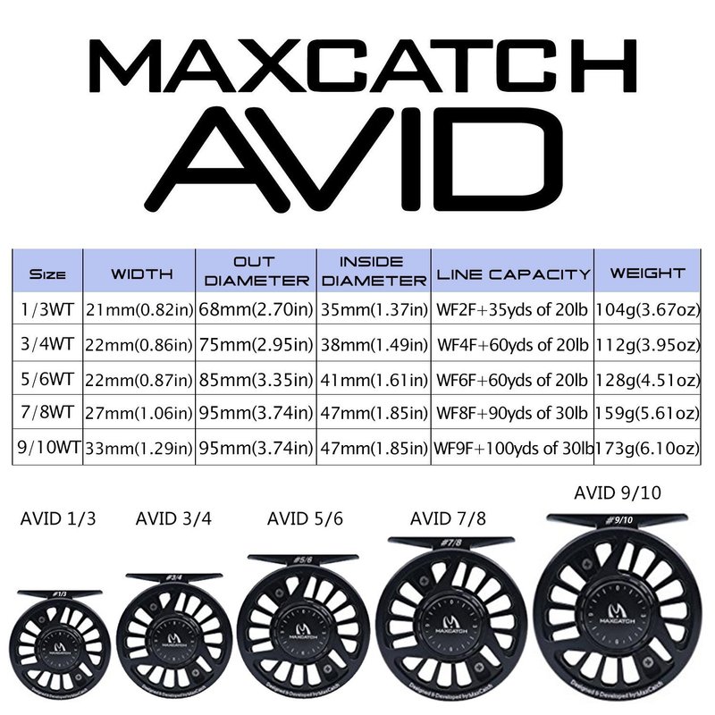 Maxcatch Fly Fishing Reel with CNC-machined Aluminum Body Avid Series Best Value - 1/3, 3/4, 5/6, 7/8, 9/10 Weights(Black, Green, Blue, Silver, Black&Silver)(Matte Black, 5/6 wt)