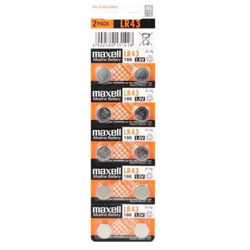Maxell LR 43 Alkaline Button Cell Batteries Pack of 10