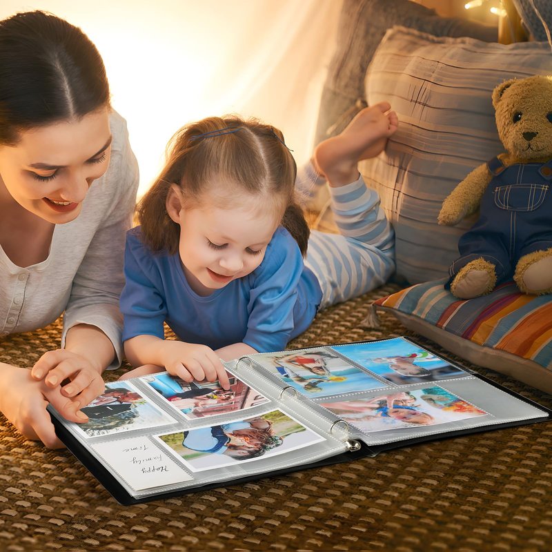 - Top Loading: Top loading photo sleeves design makes it easy to insert and remove photos or cards. And top-loading designed photo protector pages can make sure photos or cards won't fall out.