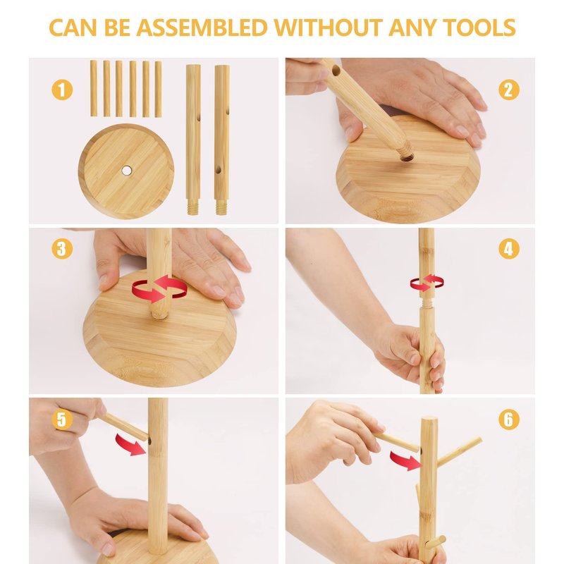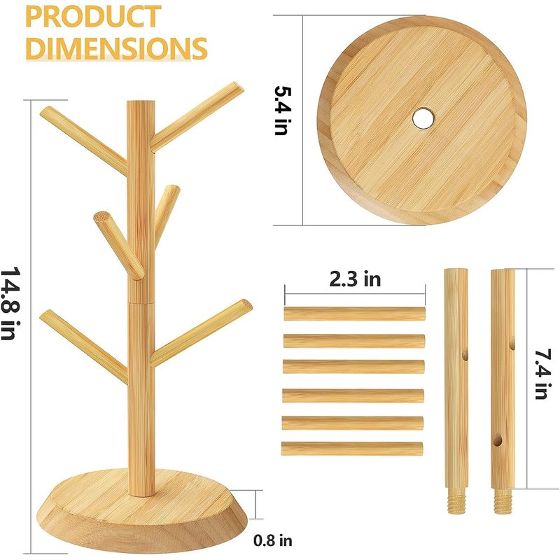 Mug Holder Tree Simple and Plain. Free up precious cupboard space with Practical Mug Holder. Store up to six of your favorite mugs or tea cups, the holder's simple design will instantly add a modern touch to your kitchen. Made of durable wood, branches slightly tilt upward to ensure items remain safely in place. Also great for organizing bracelets and other small items. Features: Durable Material: Coffee mug holder stand is made of bamboo material, sturdy and durable. Polished smoothly and will not become rust. High Quality: The thickened base and moderate weight make the mug holder extremely sturdy and stable which is not easy to bend and break without swaying while holding large mugs or cups. Space Saving: This mug tree holds up to 6 coffee or tea mugs for easy access, organizing your kitchen cups and saving space on countertop and in pantries or cabinets. Branches in different directions maximize the storage space for large mugs or cups. Easy to Clean: You can simply clean it with wet cloth and then dry thoroughly. 12 Months After-Sales Service: We provide full refund or free replacement if there is any quality issues, so no worry, just buy it !