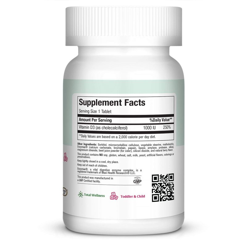 Maxi Health Chewable Vitamin D 1,000 IU - Chew-D-Max - Vitamin D3 for Kids and Adults - Kosher - 100 Chewables - Natural Berry Flavor