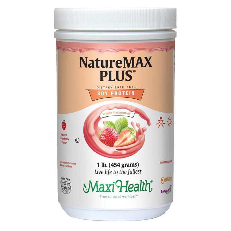 Maxi-Health NatureMAX PlusTM Energy Support Drink Soy Protein Powder - Sugar Free Diet Supplement - 20g Protein Per Serving - Natural Strawberry Flavor - Kosher Vitamin - 1lb
