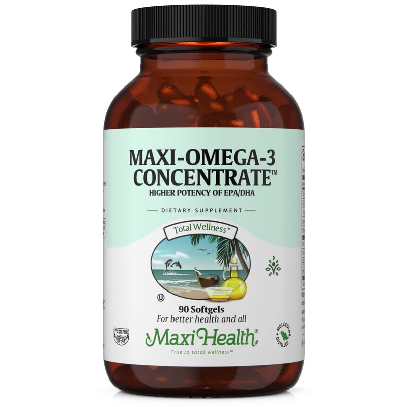 Maxi Health Omega-3 Fatty Acids Concentrate - Fish Oil - 2000Mg - 90 Gel Capsules - Kosher