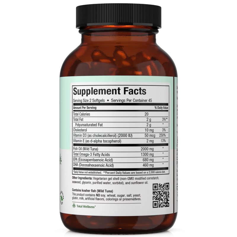 Maxi Health Research is proud to provide you with our line of healthy, easy-to-take fish oil supplements that offer a potent source of omega-3 fatty acids which the body is unable to produce on its own. After nearly 50 years of trusted industry experience, our proprietary range of fish oil products includes premium blends with additional vitamins and minerals. Always easy to digest, with no fishy burps or aftertaste.HIGHER POTENCY SOURCE OF EPA / DHA + VITAMIN D3You keep reading and hearing about the benefits of essential fats, the omega-3 fatty acids: eicosapentaenoic acid (EPA), docosahexaenoic acid (DHA). You’ve heard and read how it supports the brain, the eyes, joints, mood, memory and heart health. Remember, it’s the omega-3’s that most people are deficient in, not omega-6. An enteric coating bypasses the stomach to dissolve in the small intestines for best results and maximum potency of EPA and DHA per serving. Each serving is also loaded with 2000IU Vitamin D3.NO FISHY BURPS OR AFTERTASTEThousands of satisfied customers have reported ZERO fish burps, ZERO fish smell, and ZERO fishy aftertaste when taking Maxi Health omega-3. Gluten Free. No artificial flavors, colorings, or preservatives.MERCURY & HEAVY METAL FREERigorously third party tested to provide guaranteed potency and purity. Cold extraction, molecular distillation and molecular filtration ensure that all Maxi Health fish oil supplements are free from mercury, lead, cadmium, PCBs, pesticides, dioxins, as well as other heavy metals. Non-GMO verified. Pescatarian friendly. Manufactured in a cGMP facility in the USA.WILD-CAUGHT FISH | KOSHER CERTIFICATIONMade using only fresh, wild-caught ocean fish. Kosher certified by the Udvari Kashruth (UK) and the Orthodox Union (OU). Directions: Take two (2) softgels or more daily with meals or as directed by a healthcare practitioner.