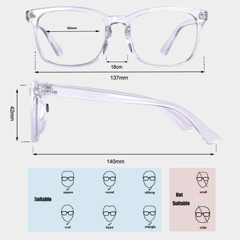 MAXJULI Fake Glasses with Cute Nerd Frame Reading/Gaming/TV/Phones Glasses for Women Men (Transparent)