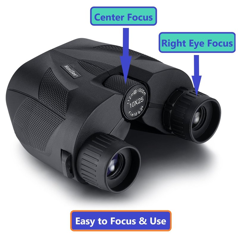 - Easy on focus & Easy to use -- Right eye focus and center focus binoculars, the smooth Center Focus Wheel make the binoculars easy to focus on the target quickly.