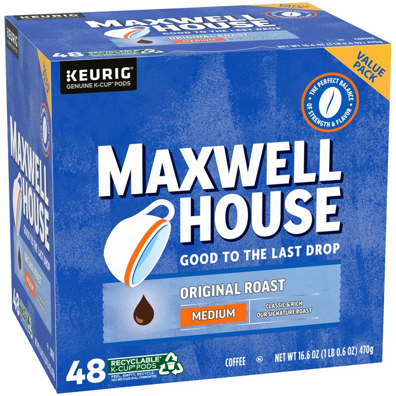 - 48 ct box of Maxwell House Original Roast Medium Roast K-Cup Coffee Pods