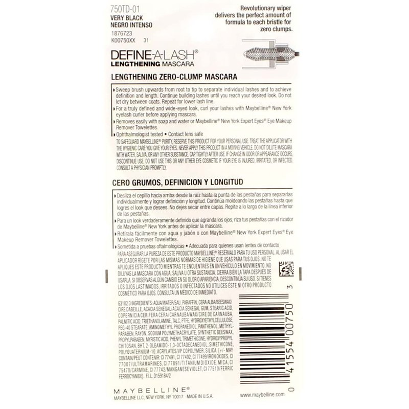 Maybelline Define-A-Lash Mascara, Very Black [801], 0.22 oz (Pack of 6)