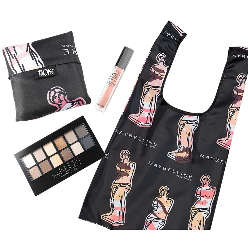 Maybelline New York Limited-Edition Fundles Send Nudes w/ Eyeshadow Palette, Color Sensational Vivid Hot Lacquer Lip Gloss and Easy-Carry Nude Tote-Bag