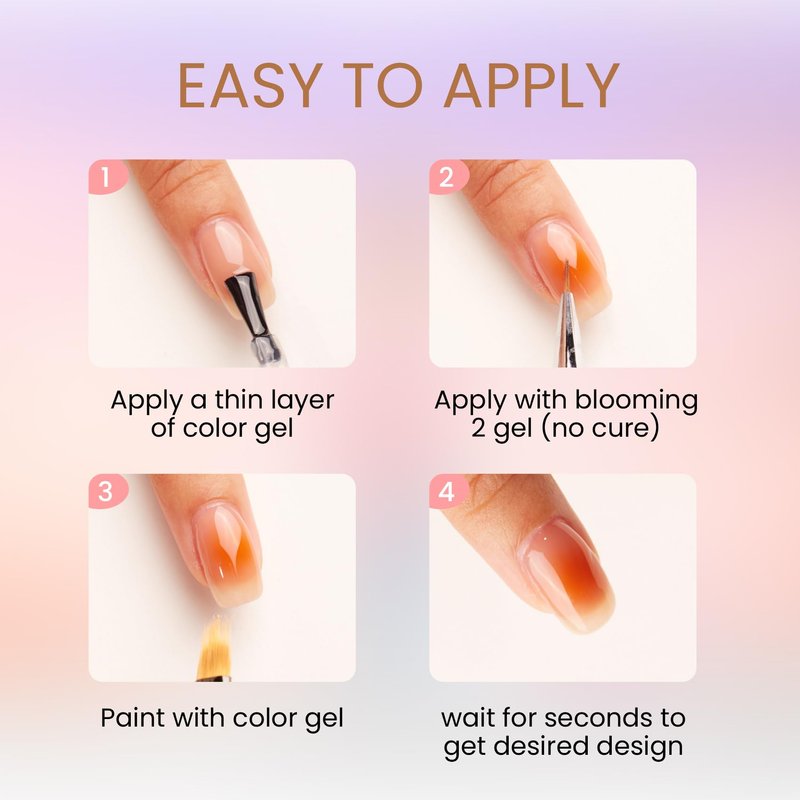 • Clear Blooming Gel:MAYCHAO 15ML Clear Blooming Gel, upgraded capacity, helps to seal the gel polish, protects the nail surface, keeping the gel nails lasting long in a gorgeous shiny Effect.