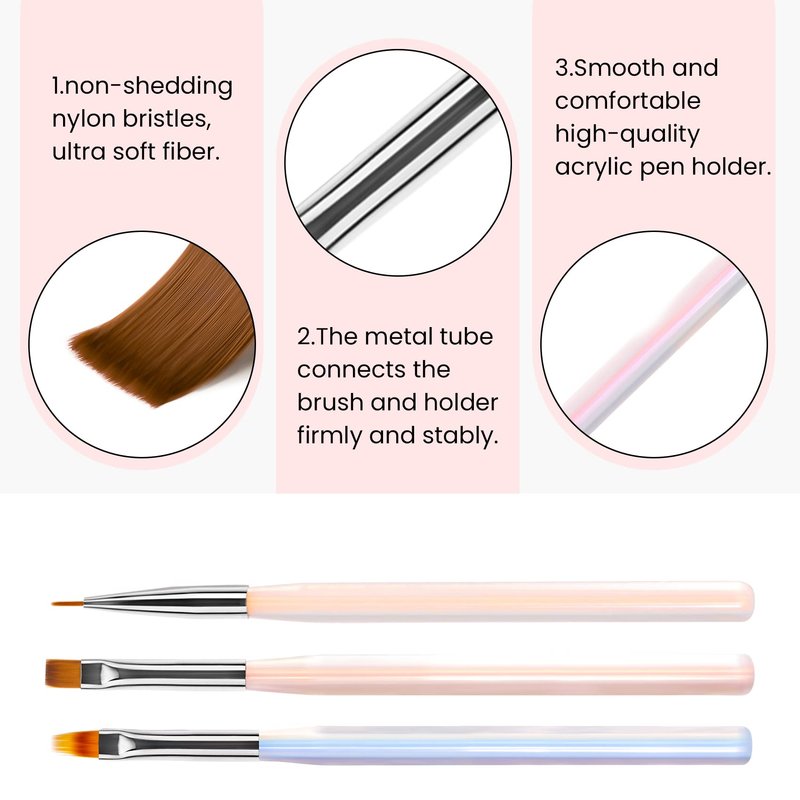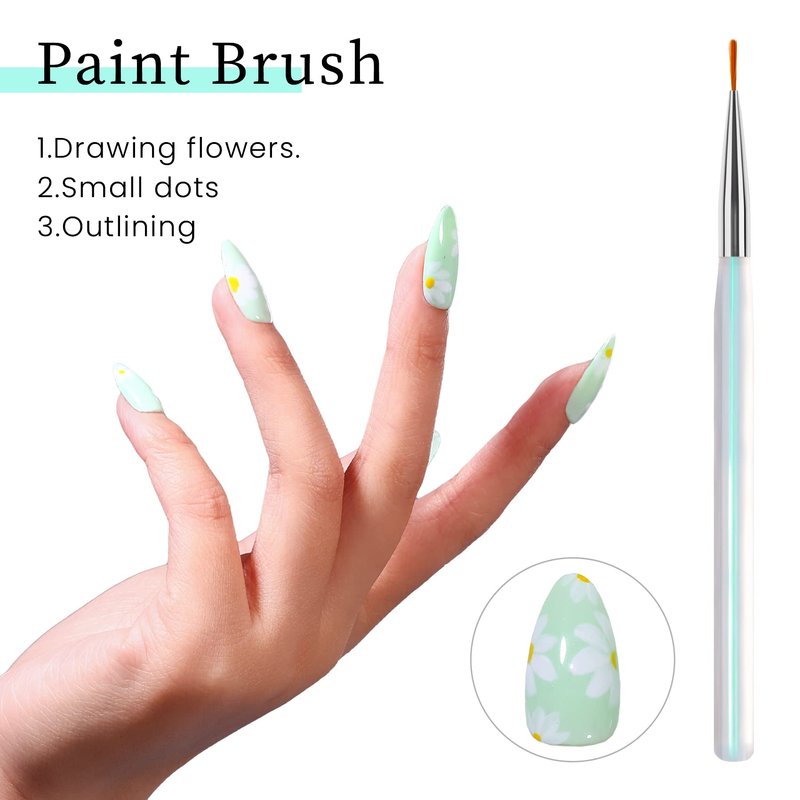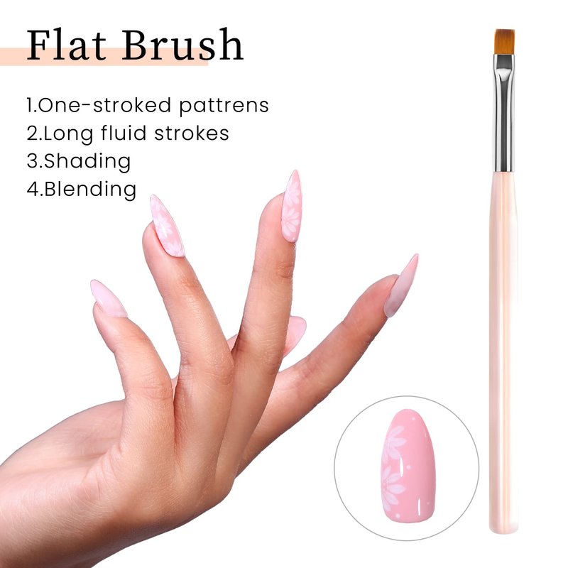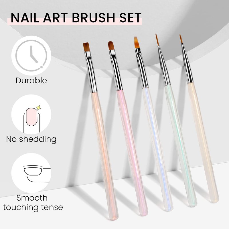 - 【Professional Nail Design Brushes】5 brushes have 5 different shapes of brush heads. Including nail flat brushes, nail builder gel brush, nail fine liner brushes. You can DIY all kinds of nail art designs you like by yourself at home with this nail design kit.