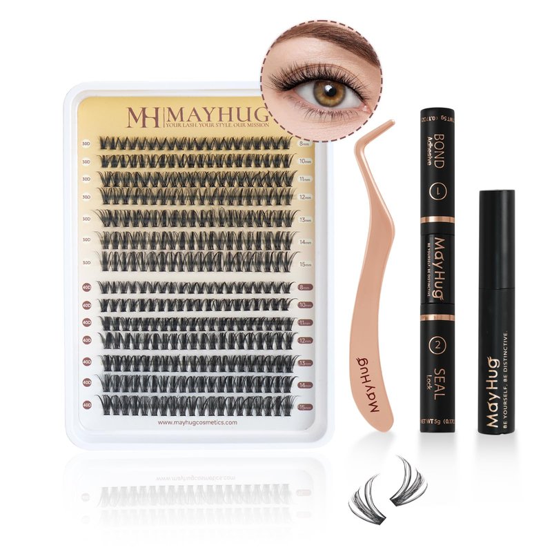 - ❤️HIGH-QUALITY INDIVIDUAL LASHES: Mayhug cluster lashes are made of high-end quality silk fiber, totally cruelty-free, and can be reused many times with proper care. Soft, comfortable, and knot-free. Our volume lash clusters are carefully handcrafted and adjusted, very light, and won't weigh you down, creating the effect perfect lash look