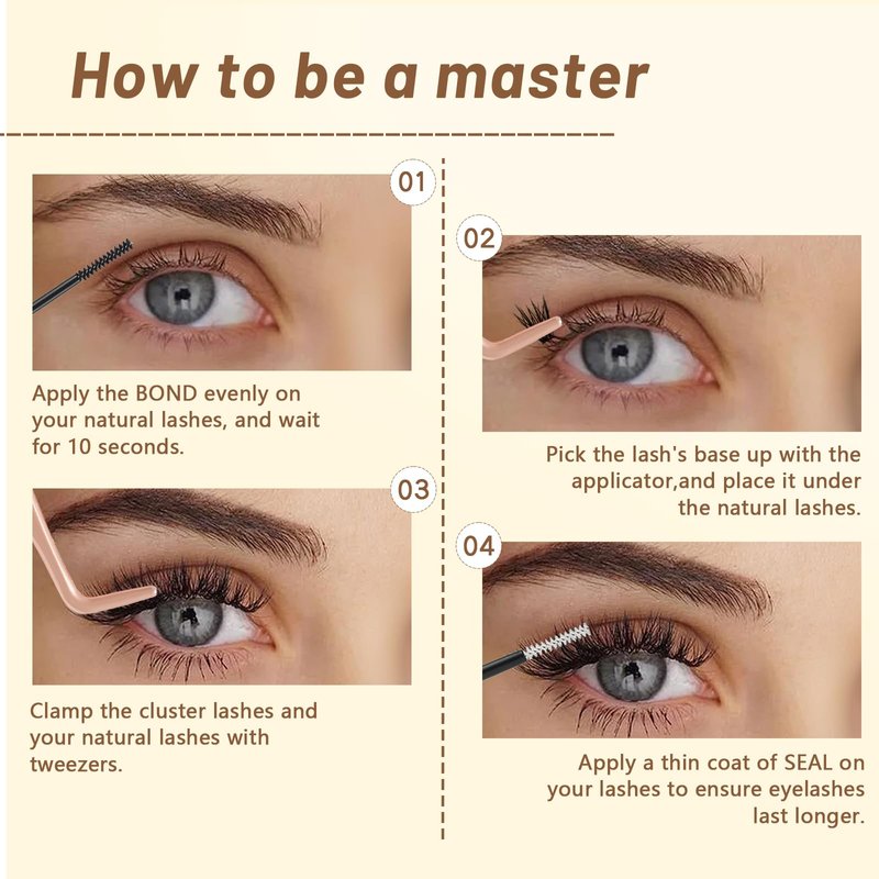 - ❤️DIY-CHANGE LASH STYLE FREELY: If you choose DIY lash clusters, you can handle all the procedures by yourself at home. The operation is very simple. If get tired of the existing lash style, just remove and apply a new one (only takes 10-15 mins). Individual cluster lashes can help you with everything. Perfect DIY cluster eyelashes for all lashes beginners