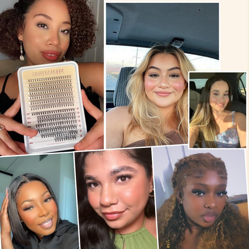 - ❤️LASHES NATURAL LOOK: Wispy lash extension clusters fit perfectly with your own lashes, which will make you happier and more confident. Mayhug provide various lengths of cluster lashes, you can create a variety of styles like a natural eyelash, volume eyelash, cat eyelash, etc. Design different styles of makeup that can be used for many different occasions like daily life, parties, birthdays, weddings, or travel