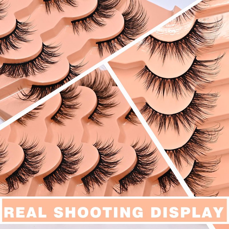 Elevate your makeup game with these high-quality faux mink lashes. This set includes 7 pairs of fluffy, wispy eyelashes that provide a natural, voluminous look. The lightweight lashes are designed for comfort and easy application. With their 6D volume and cat eye style, these lashes will enhance your eyes and give you a glamorous, eye-catching appearance. Get ready to flutter those luscious lashes and turn heads wherever you go. Suitable for all occasions, from casual days to special events. Achieve a stunning, flirty look with this versatile lash set.