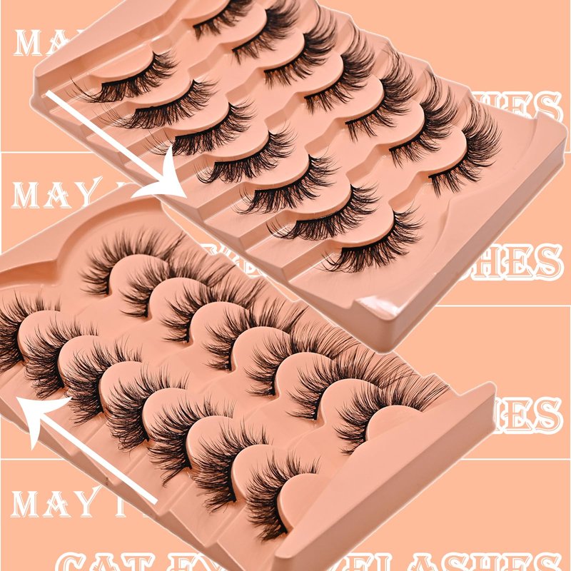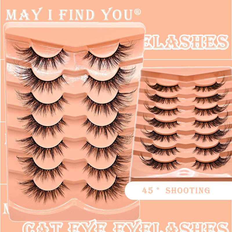MayIFindYou Cat Eye Lashes Natural Look,Fox False Eyelashes Gorgeous Wispy Faux Mink Lashes 7 Pairs Pack(Black Cat BC2, 7 Pairs Pack)