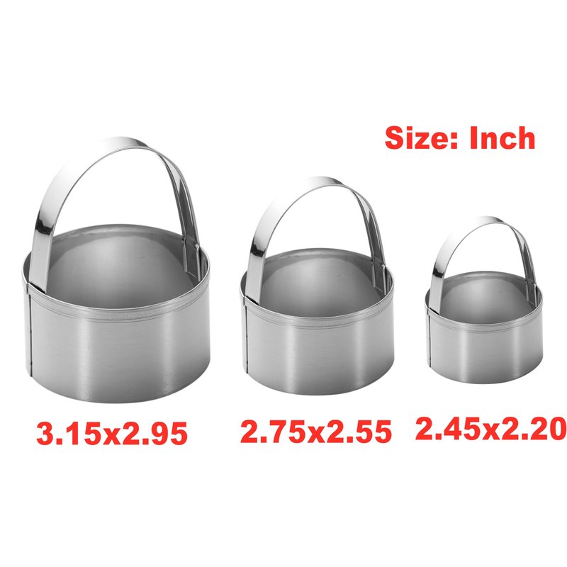3 Pieces Round Biscuit Cutter with Handle - Stainless Steel Round Circle Doughnut Cutter Baking Molds Assorted Size