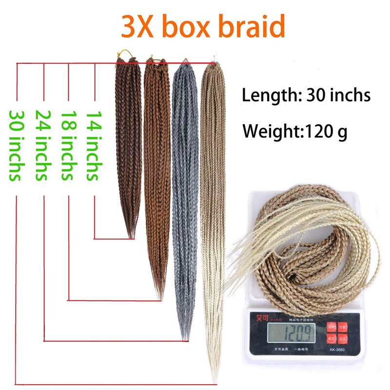 Name:3X Box Braids Crochet Hair Synthetic Hair Fiber High Temperature Soft Light and Breathable