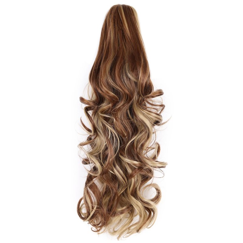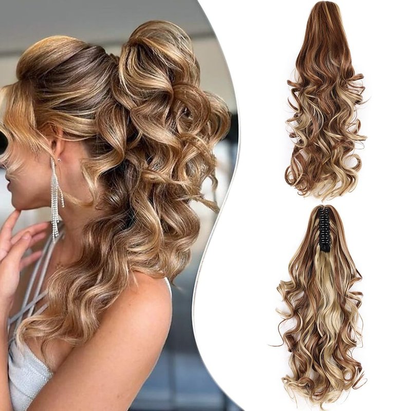 MAYSA Wavy Long Ponytail Extension,20in Wavy Curly Claw Clip in Ponytail Hair Extensions, Clip in Ponytail Synthetic Hairpiece for Women #12H24 Auburn Brown & Blonde
