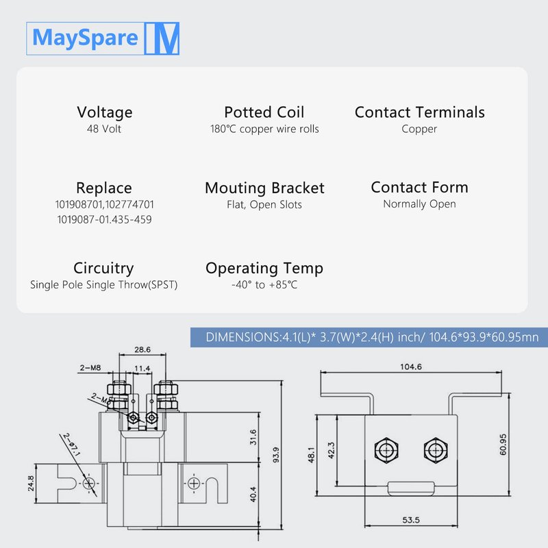 MaySpare 48V Golf cart Solenoid,4 Terminal Solenoid Coil, Albright Solenoid for Club Car 95-Up DS and 04-08 Precedent Golf Carts 101908701,102774701