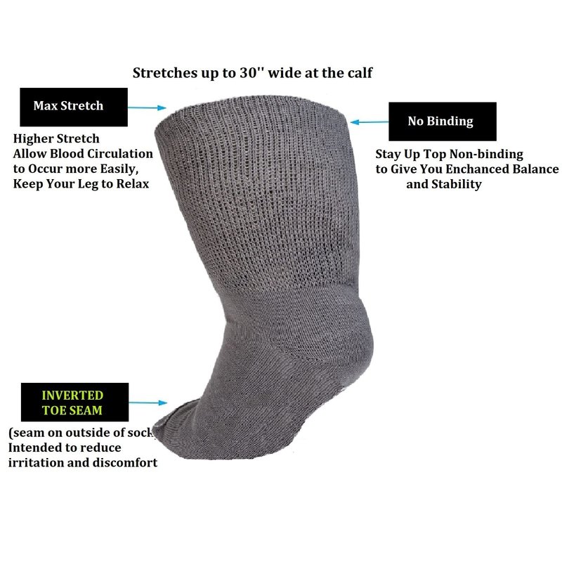 - Premium Fabrics: Our extra wide socks for swollen feet are made with superior quality, highly durable and stretchable materials, a combination of 91% cotton, 7% nylon and 2% spandex which is machine washable and guaranteed not to easily deform with time!