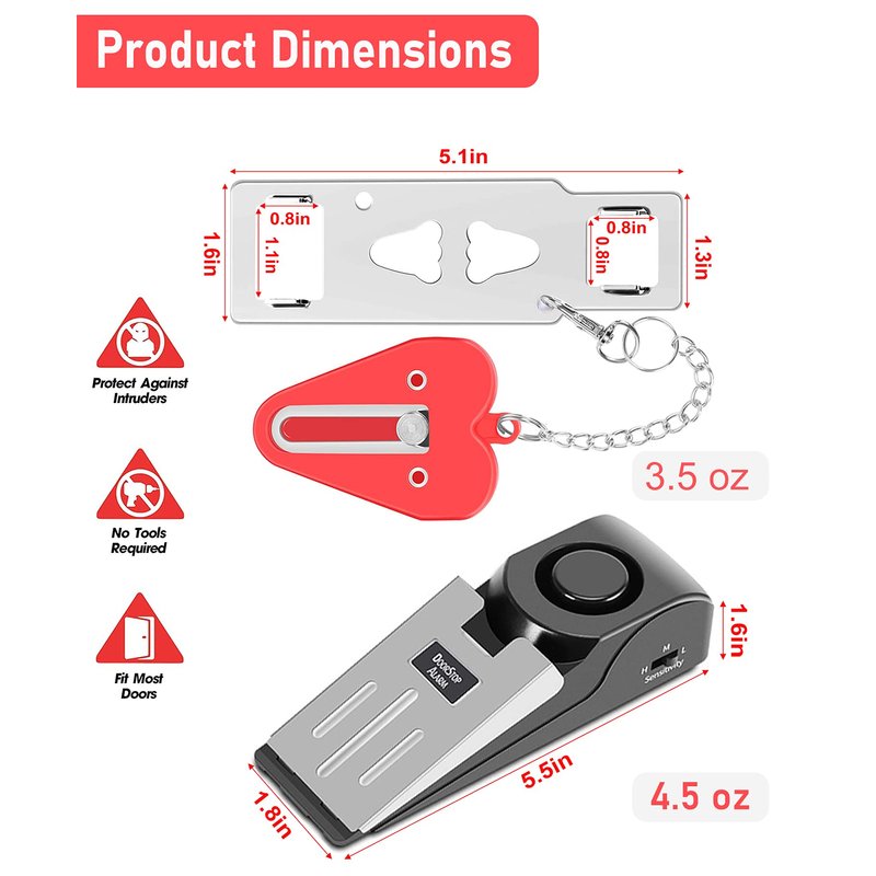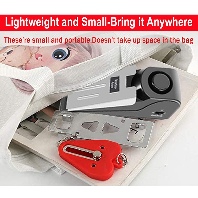 - Package Include:1x Door Stop Alarm,1xPortable Door Lock,1x Instructions,1x Storage bag,1xGift Package
