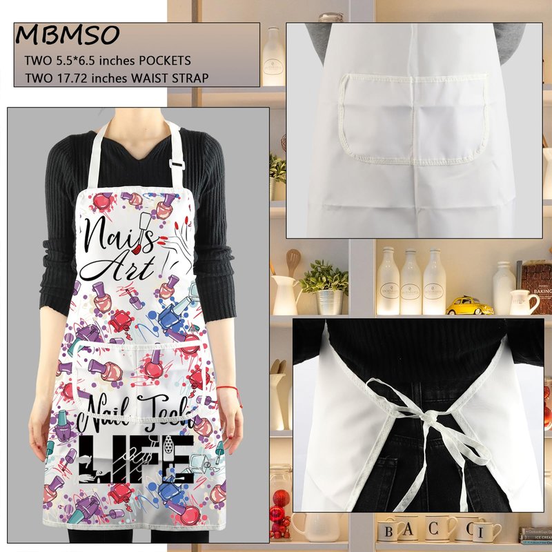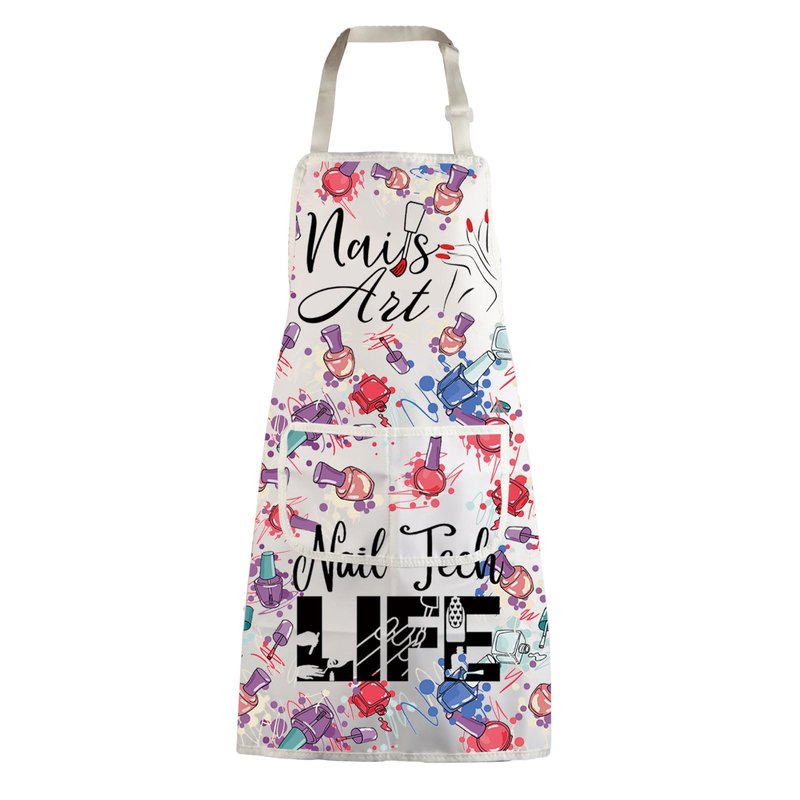 - [QUALITY MATERIAL]: Nail Tech Apron is made of 290 waterproof composite fabric, it has a unique design, with the long waist ties and an adjustable neck strap for comfortable wearing. Kitchen adjustable aprons provides superior protection from water, oil and dirty, kitchen grease, spills and food stains. Non-absorbent and washable. No harmful substances, safe for you and your family.