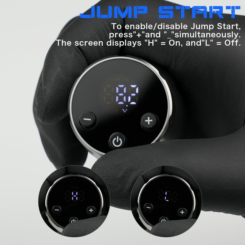 - ✨【Jump Start Function】The "Jump Start" rapidly initiates or enhances the wireless tattoo machine pen with an initial energy surge, providing a powerful push to swiftly kickstart tattoo needles. Press the "+" and "-" buttons simultaneously for 3-4 seconds to turn on and off the "Jump Start". It supports your wireless tattoo gun to defeat the stiffest of cartridge needle membranes. Compatible with almost all wireless tattoo machines, rotary tattoo pens and pmu machines.