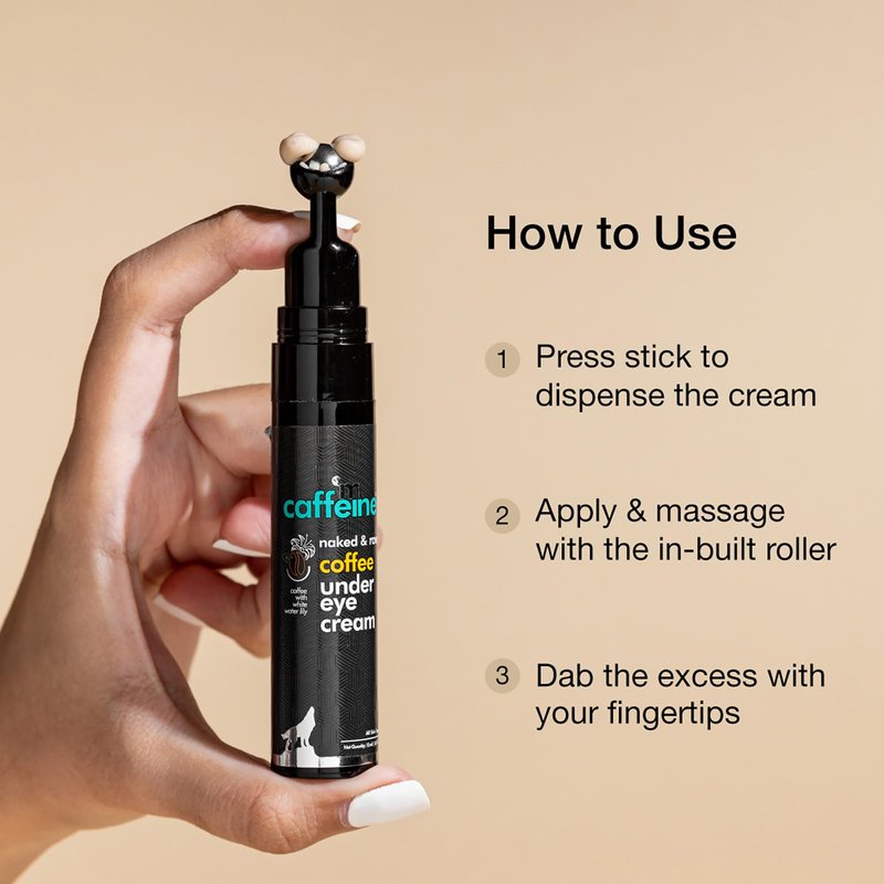 mCaffeine Coffee Under Eye Cream for Dark Circles for Women & Men | Reduction in Dark Circles, Reduces Puffiness & Fine Lines | Easy Application with Cooling Massage Roller | 15ml