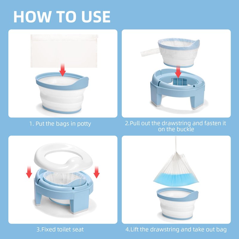 - EASY OPERATION, WITH DRAWSTRING - travel potty bags for portable potty has a drawcord, so you can take out the entire potty bag by simply lifting the drawcord, Leakproof without getting dirty