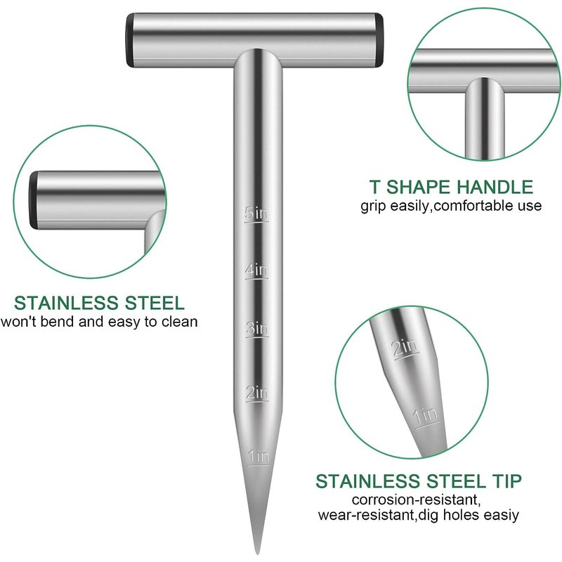 - T handle and depth mark, easily held, fits comfortably in your hand, give you full control, this dibber will save you time when you are planting bulbs and seeds
