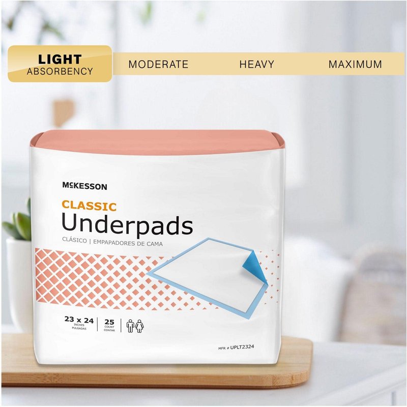 McKesson Classic Underpads, Incontinence Bed Pads, Light Absorbency, 23 in x 24 in, 25 Count