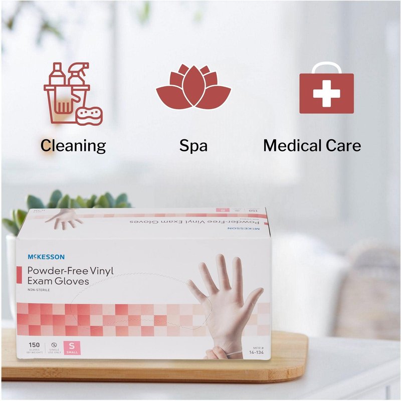 McKesson Powder-Free, Vinyl Exam Gloves, Non-Sterile, Small, 150 Count, 1 Box