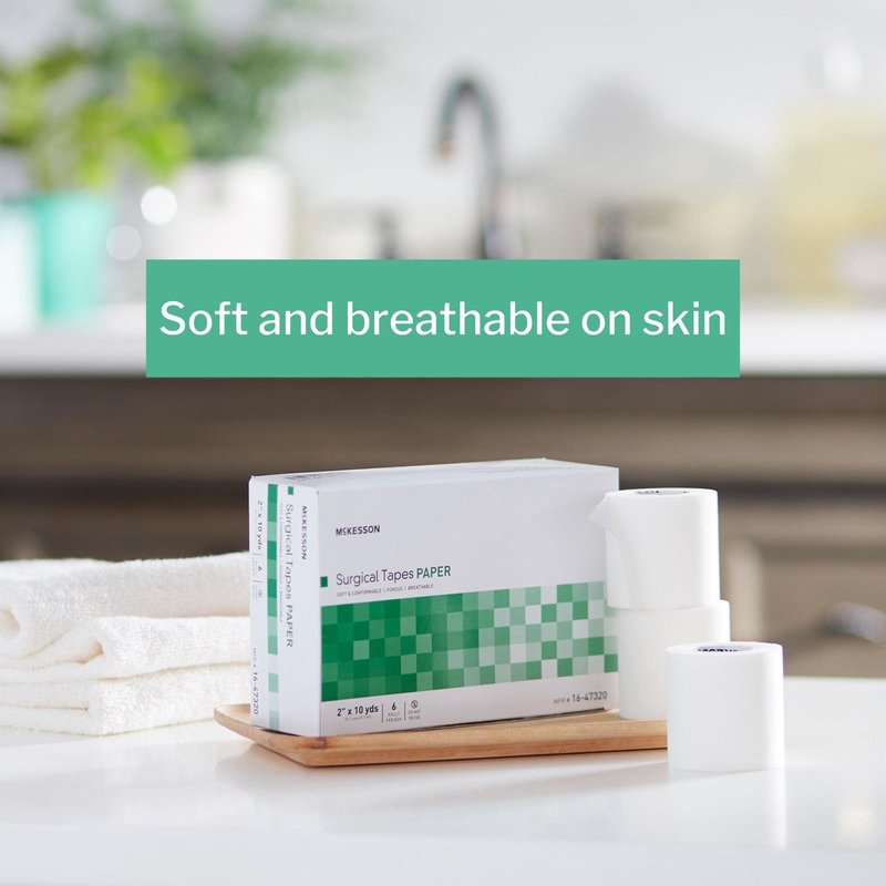 When it's time to remove the McKesson non-sterile medical tape from the skin, it comes off gently. You can easily pull it off without force to lessen the chance of discomfort or pain and to keep from causing harm to the wound area. Versatile, this porous medical tape can secure dressings, catheters, tubing and other medical devices for stable application. Both air and moisture permeable, this soft medical tape is breathable for comfort and keeps soap and other liquids out of the wound to better facilitate the healing process. Easy to use, this surgical tape offers bi-directional tearing for simple tailoring of size for various dressings and applications. Each roll measures 2 in x 10 yds.