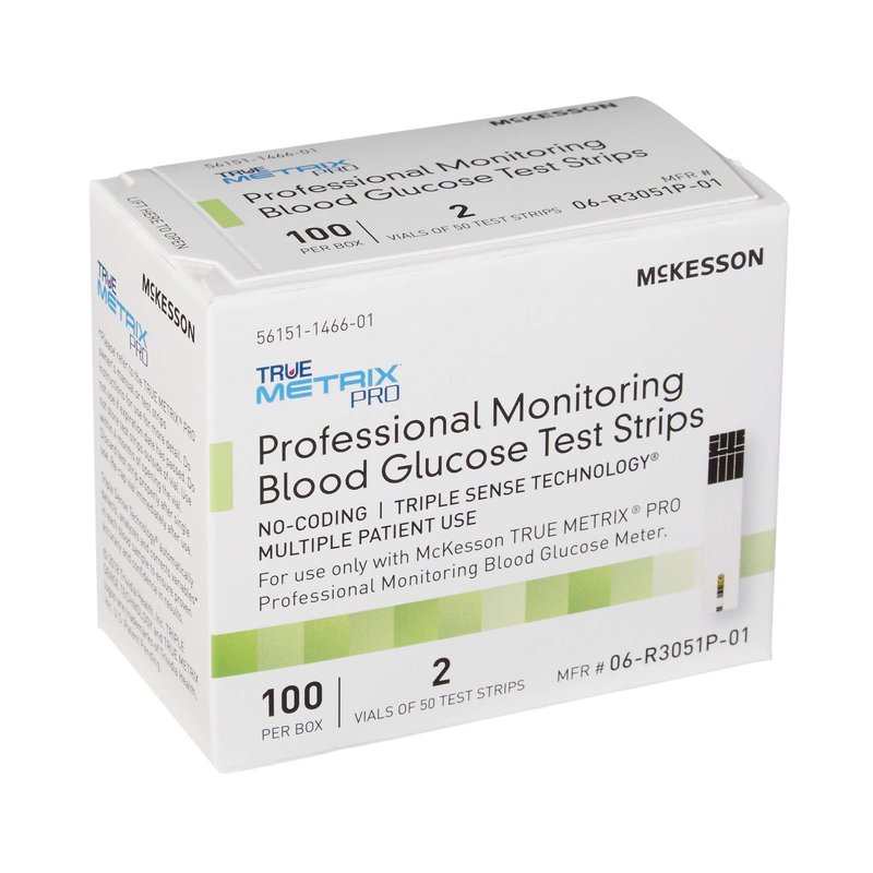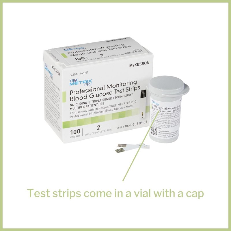 McKesson True METRIX PRO Professional Monitoring Blood Glucose Test Strips - No Coding, Triple Sense Technology, Multiple Patient Use - Vials of Strips, 100 Strips, 1 Pack