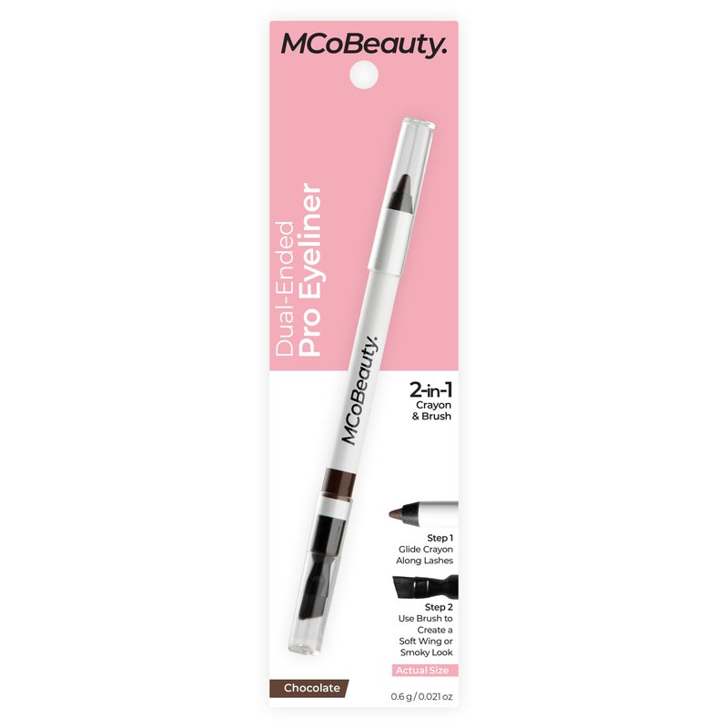 Go big or go home with the MCoBeauty DUAL-ENDED PRO EYELINER, a dramatic, intensely pigmented 2-in-1 eyeliner crayon pencil and angled brush that creates flawlessly precise lines and effortlessly bold smoky looks. For a bold and pigmented line, swipe the sharpened tip along your lash line. For a smoked out look, blend the line with the angled brushed end.