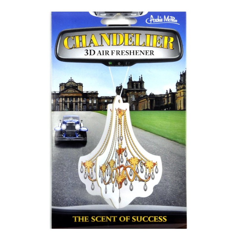 - Makes your car classy, fancy and less stinky! If most people have one complaint about their commute, its that it isnt fancy enough. This 4-1/4" x 3-1/2" (10.8 cm x 8.9 cm) Chandelier Air Freshener comes in two pieces that fit together to form a 3D chandelier that will turn your Mini into a luxurious ballroom. Smells like success! String for hanging included.
