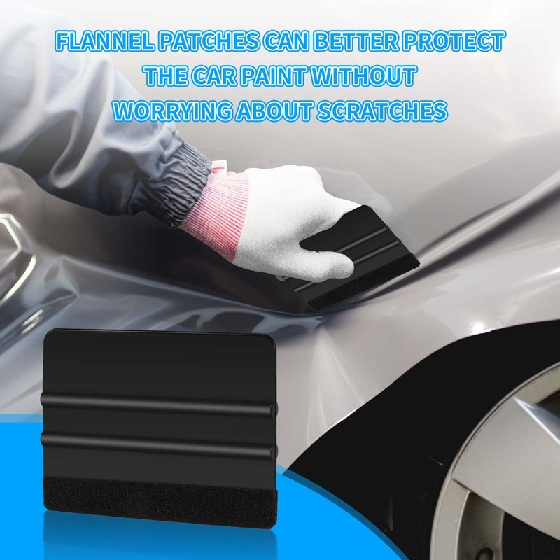 - 【Felt Edge Squeegee】The felt edge squeegee in this car wrap tool kit is made of durable ABS plastic and features quality fabric felt edges, so you won't have to worry about scratching or marking. It is highly effective for scraping off bubbles trapped under the film, preventing damage to glass, car paint, and the film itself.