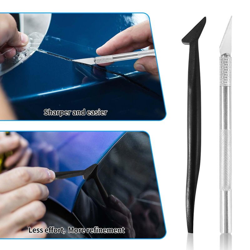 - 【Craft Knife with An Aluminum Handle】The craft knife in this window tinting tools set is sharp and durable, coming with 5 extra blades for extended use and easy blade replacement. When you want to change the blade, you can snap on the guard to securely tighten it, protecting the blade and preventing accidental cuts.