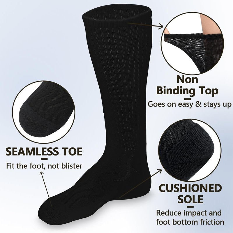MD’s Diabetic Socks are non-binding and soft-Stretch top gently conforms to your legs and won't restrict circulation for the ultimate comfort and fit. Comfortable cushioning throughout you with extra softness and protection for all day comfort wherever you go. The ultra smooth and non-irritating invisible seam provides all day comfort, is perfect for those with sensitive skin.
