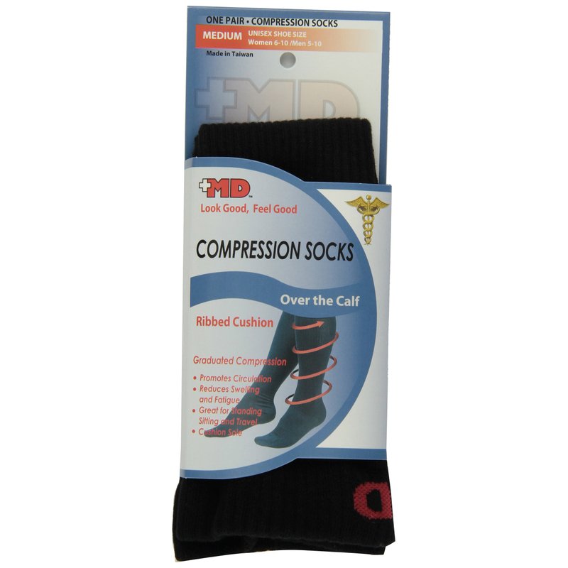 MD USA Ribbed Cotton Compression Socks with Cushion, Black, Medium